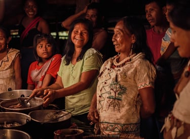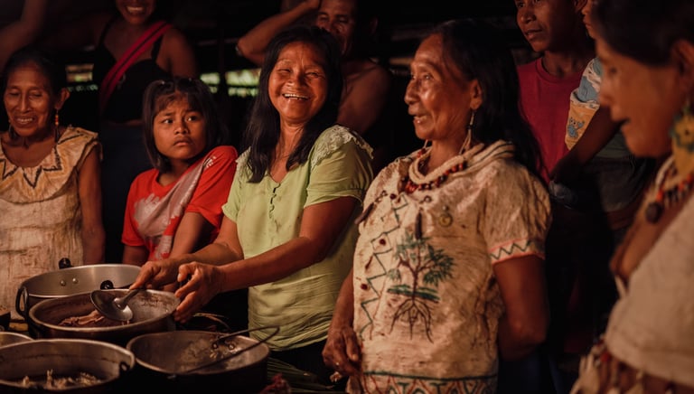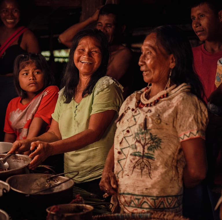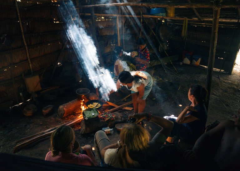 That night, local elders welcomed us with a traditional ceremony, granting us permission to enter the rainforest. It wasn't just a geographical arrival: it was a conscious entry into a living territory, guided by women who safeguard their ancestral memory.